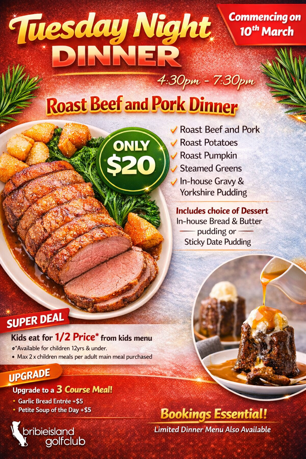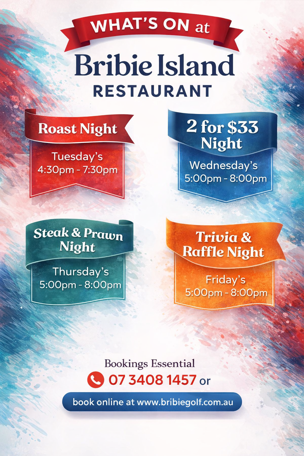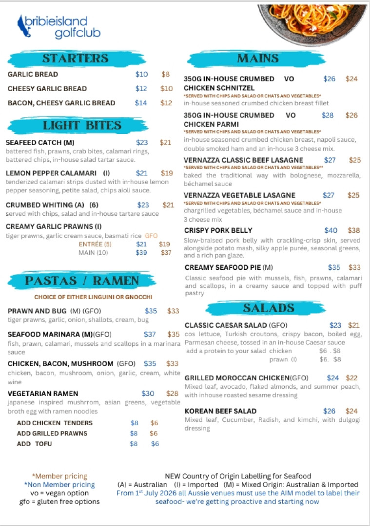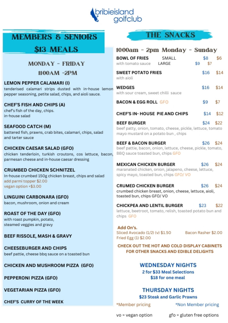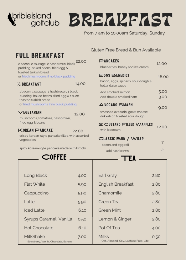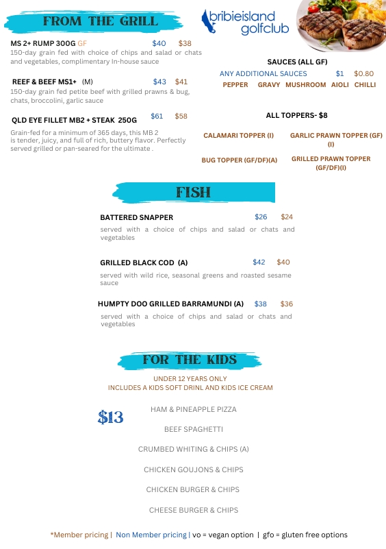Nestled within the lush surrounds of the Bribie Island Golf Club, our restaurant offers a premier dining experience with stunning views over the 18th green. Whether you’re stopping by for a casual weekend breakfast, a value-packed weekday lunch, or an elegant dinner, our menu, crafted by Head Chef Brian Stott celebrates fresh, seasonal ingredients and modern Australian flavours. From our famous stone-fired pizzas to succulent steaks and fresh seafood, we provide a warm, family-friendly atmosphere perfect for golfers and locals alike.